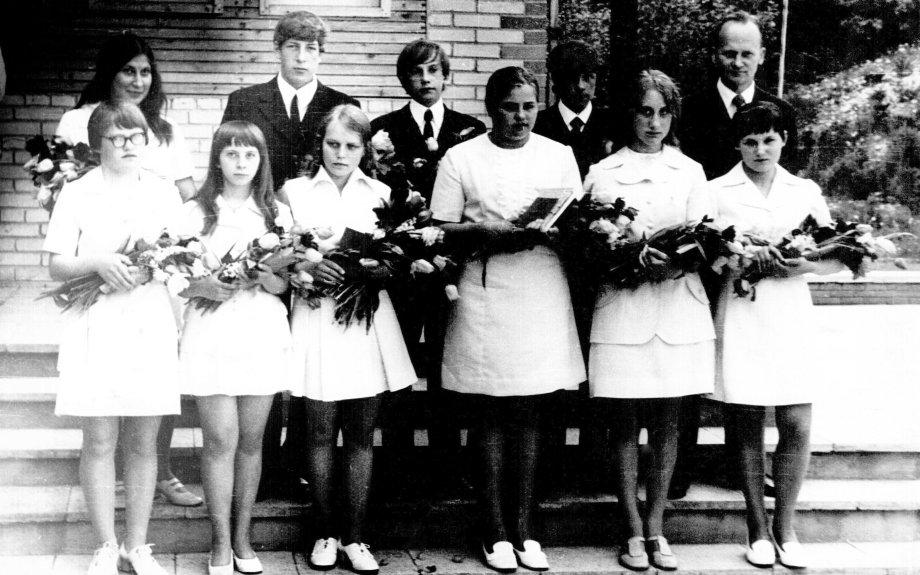 III rida vasakult: õp.-d Vaike Truman, Ilse Koovits ja Nadežda Jevdokimova; dir. Rein Tralla; õp. Boris Kivik)