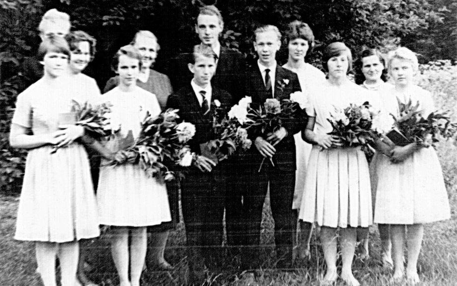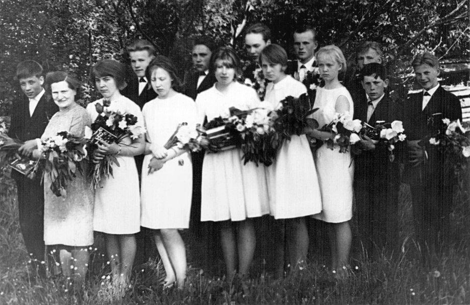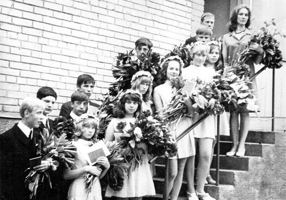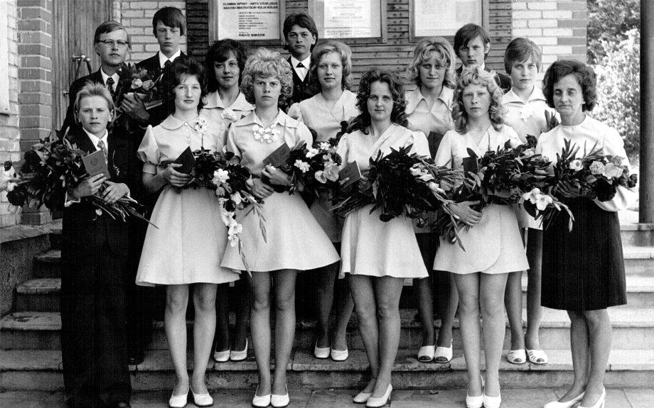 III rida vasakult: õp.-d Vaike Truman, Ilse Koovits ja Nadežda Jevdokimova; dir. Rein Tralla; õp. Boris Kivik)